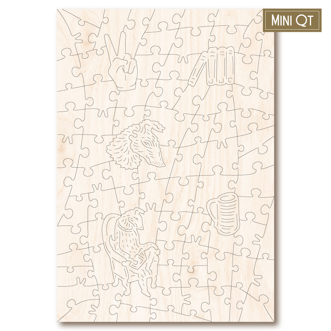 Our MINI QT puzzles are laser cut from thick, 4mm plywood and include 5 whimsies - they make a great puzzle snack!