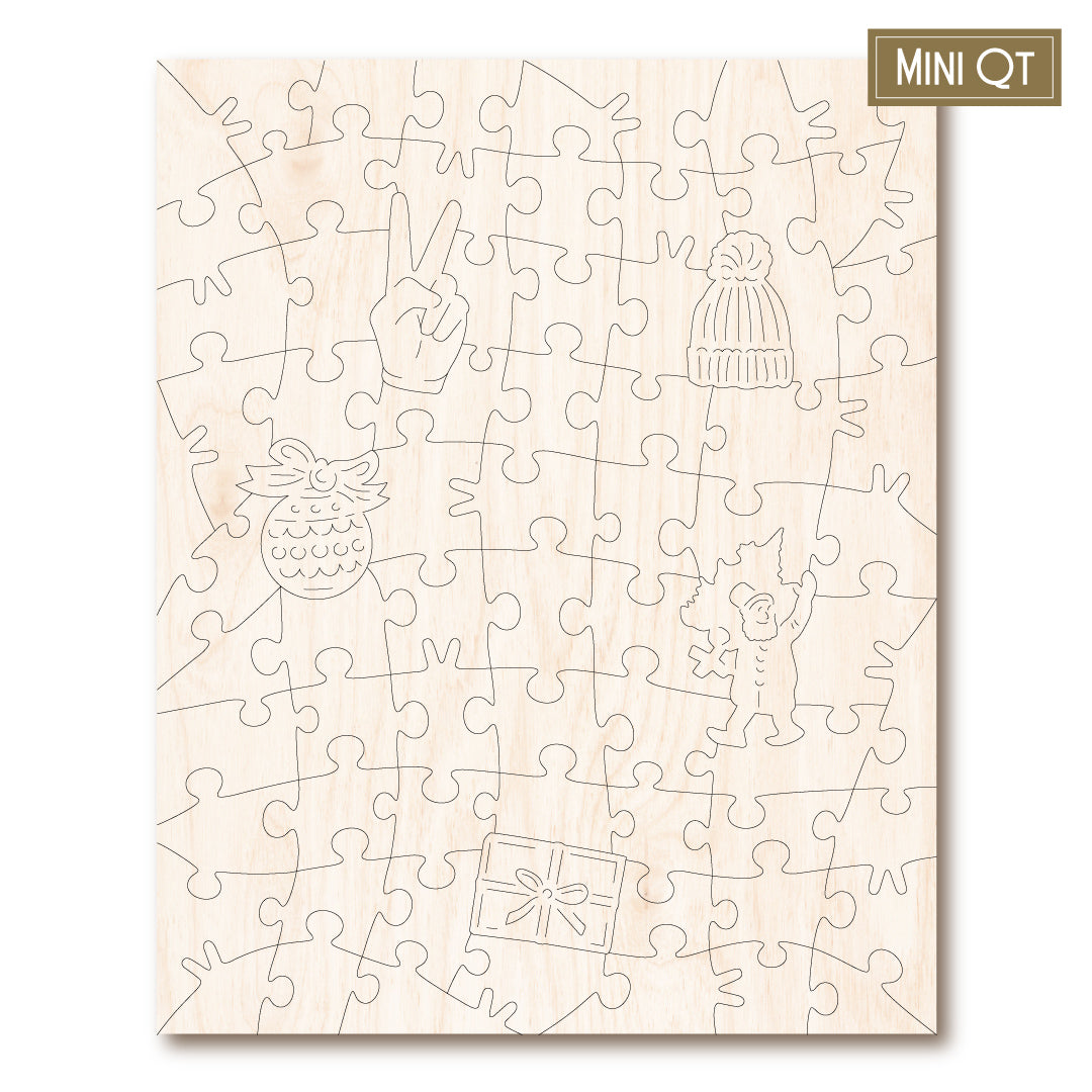 Our MINI QT puzzles are laser cut from thick, 4mm plywood and include 5 whimsies - they make a great puzzle snack!