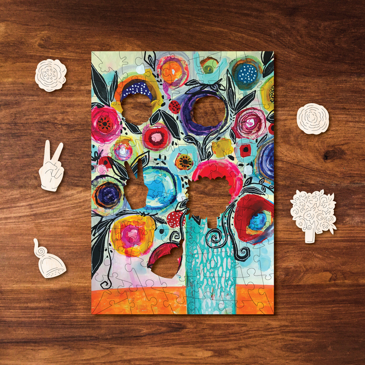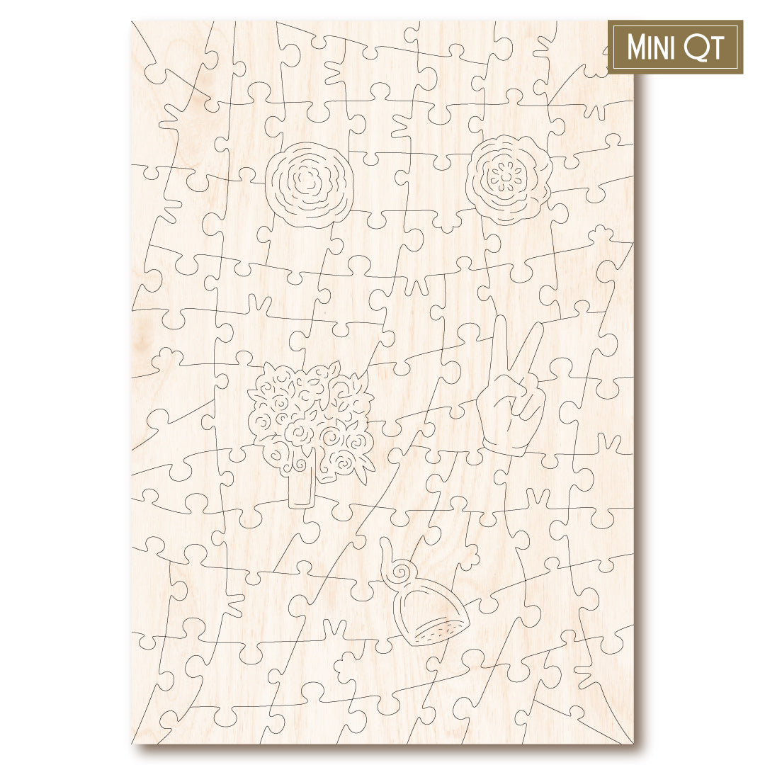 Our MINI QT puzzles are laser cut from thick, 4mm plywood and include 5 whimsies - they make a great puzzle snack!