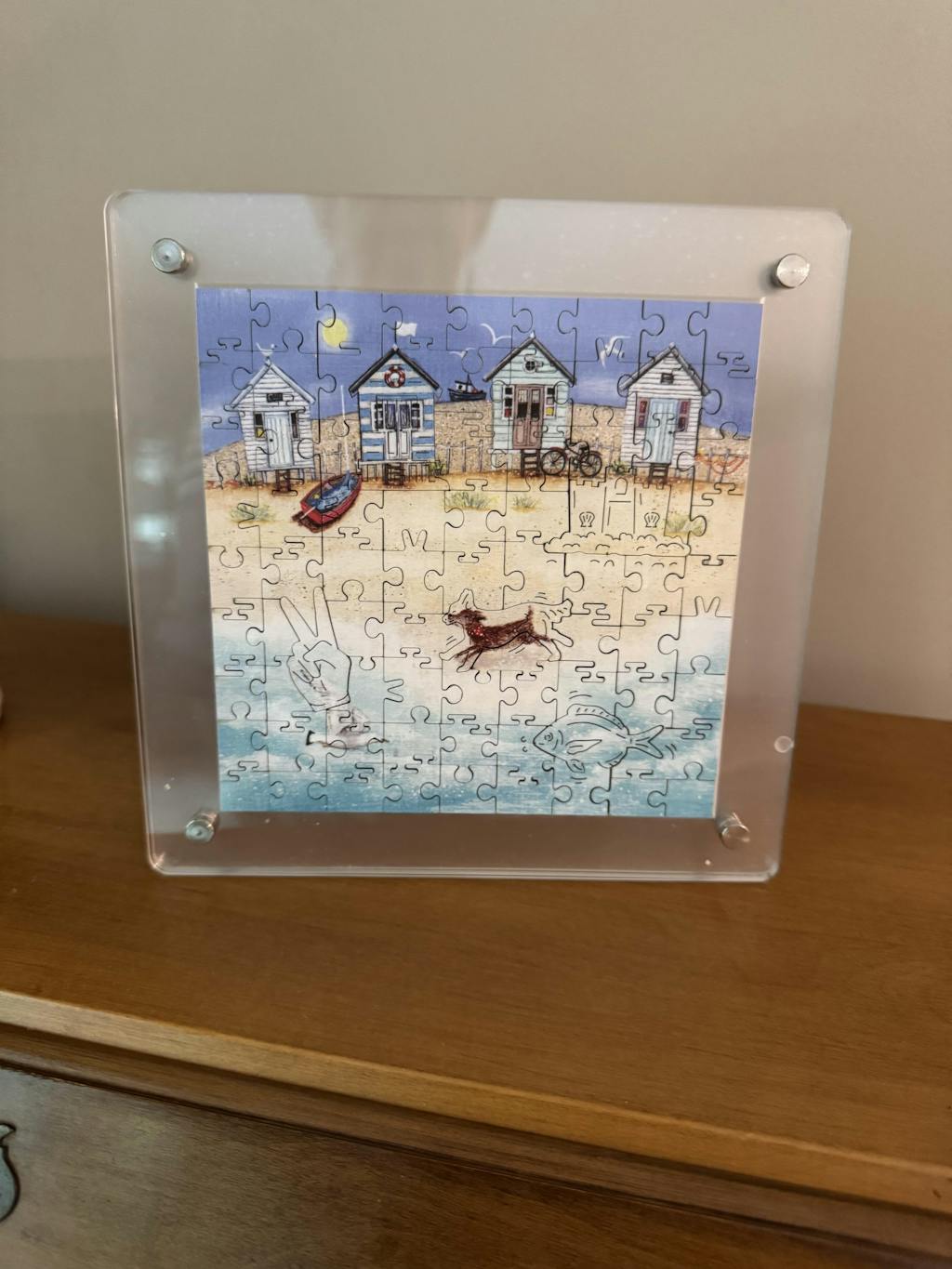I received my first Victory mini puzzles and frame this month. After assembling the beach motif puzzle (which was so much fun!), I framed it in the QT mini frame and placed it on my kitchen desk. It fit the puzzle perfectly and will be easy to change with other puzzles. It's like having a fresh picture whenever I want it.