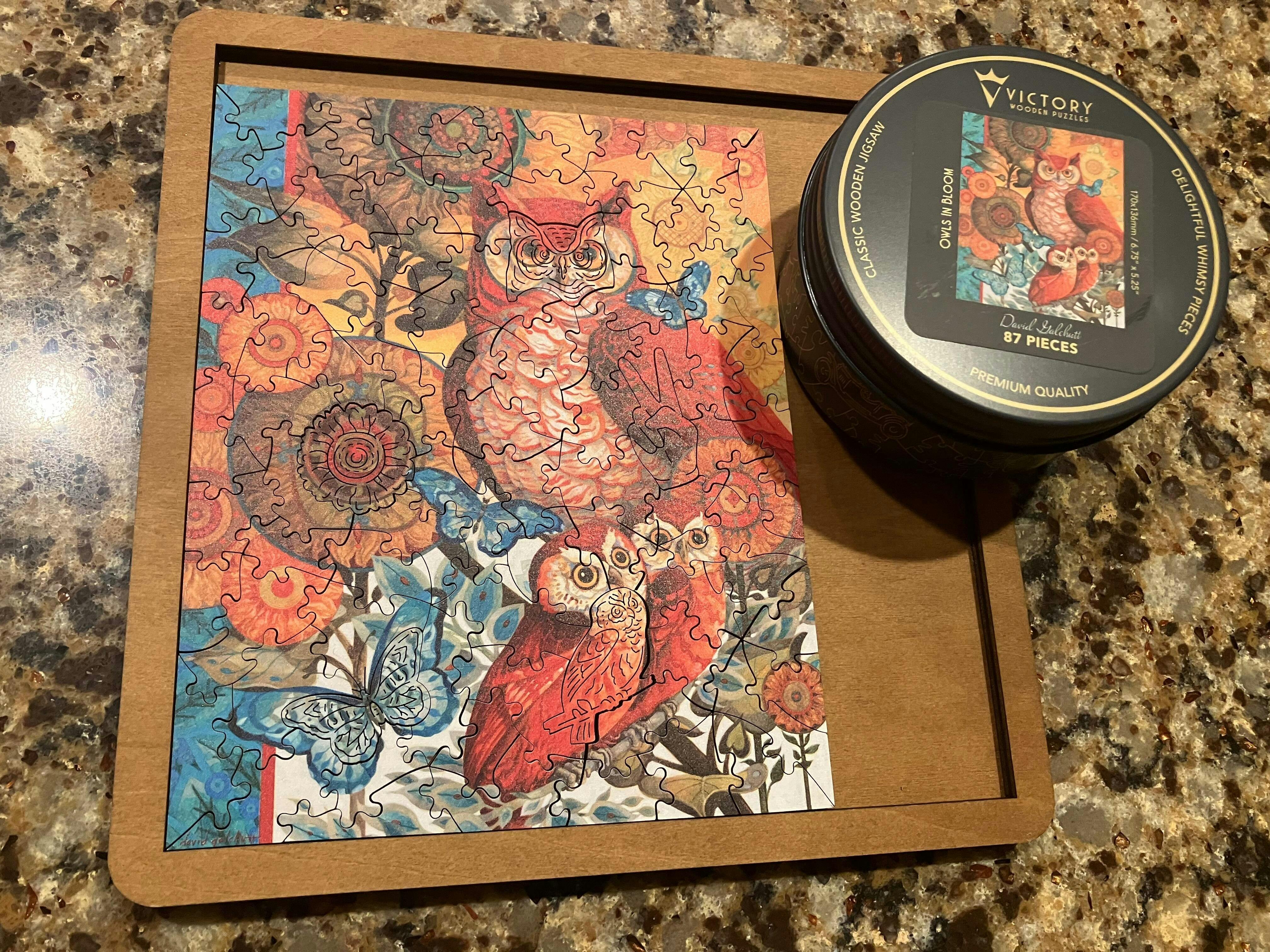 I have gone overboard in ordering the puzzles with free tray. not at the same time of course ($). they make wonderful gifts & stocking stuffers. I ordered 3 gift box sets (4 puzzles w/tray) in box. and I have 3 sets of (3 puzzles/tray) I love puzzles & these are perfect & small enough for travel also. Puzzles like these you will never get rid of !