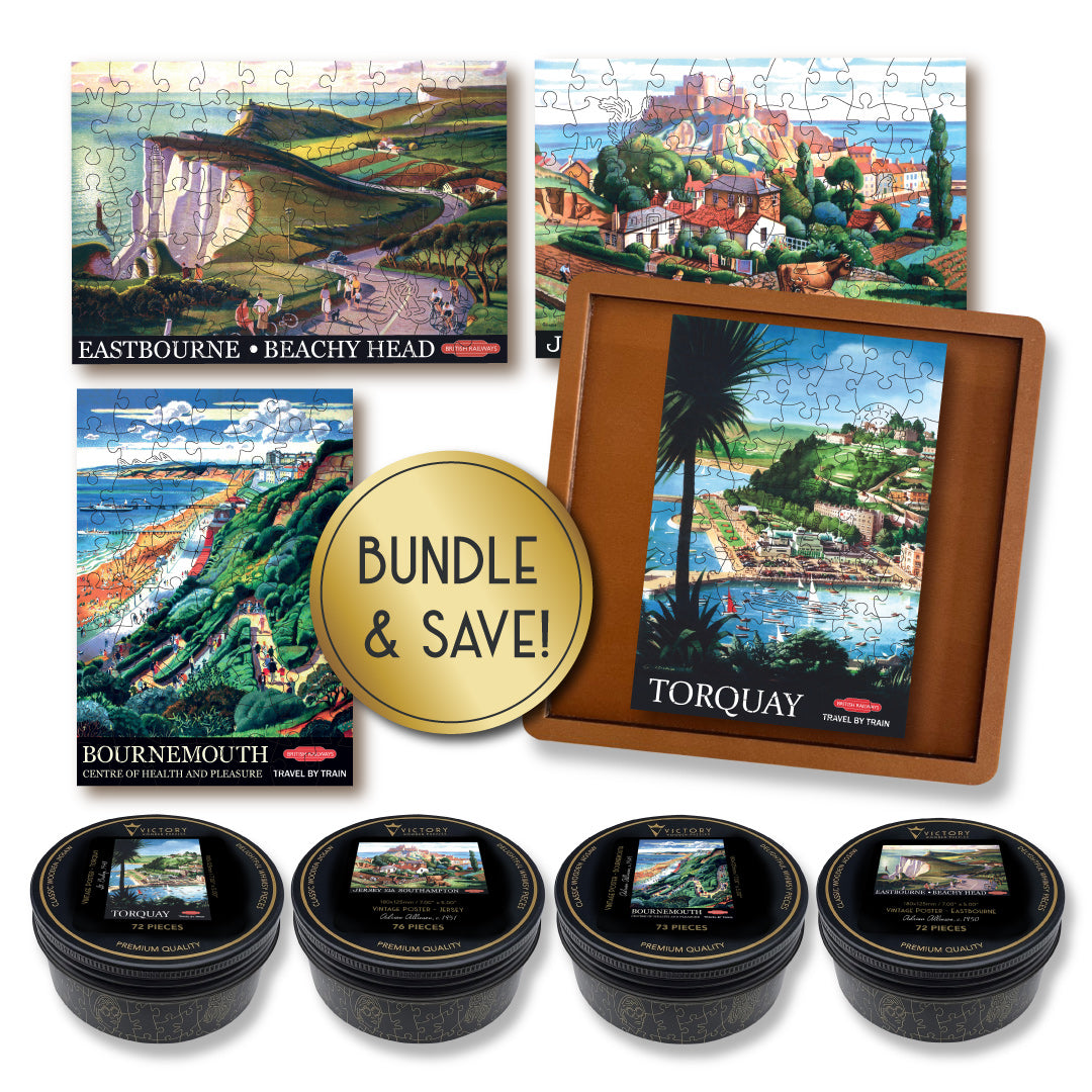 4 mini puzzles QT et un plateau de rangement pour mini puzzles QT dans un magnifique coffret cadeau - le moyen idéal de commencer ou d'agrandir votre collection Victory !