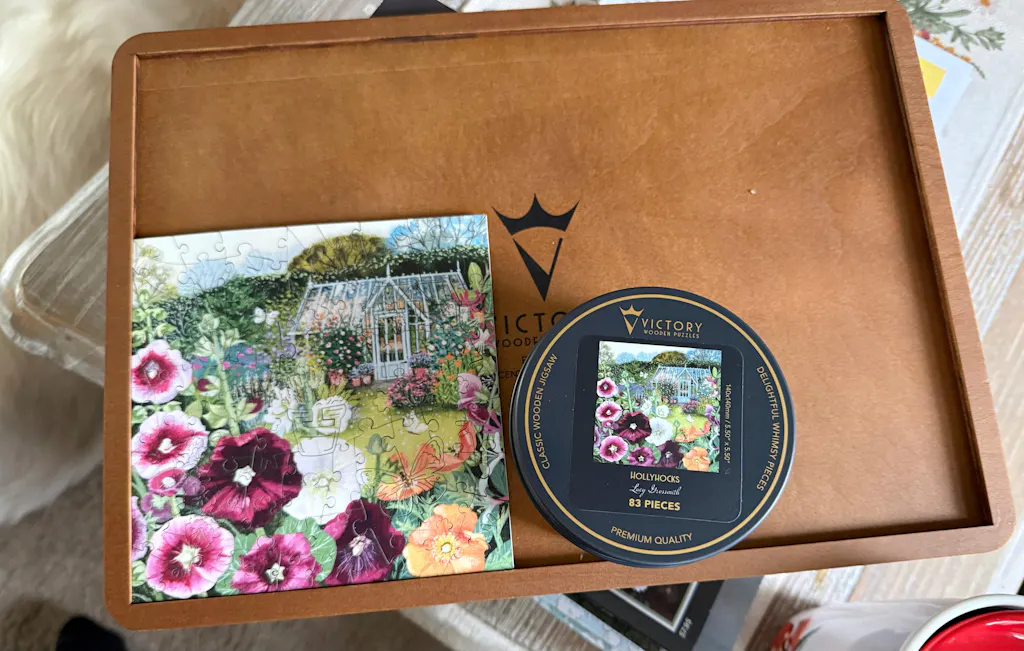 This puzzle takes me back to my childhood garden. Hollyhocks are my favourite. Not too difficult to complete but just the right amount of puzzling,