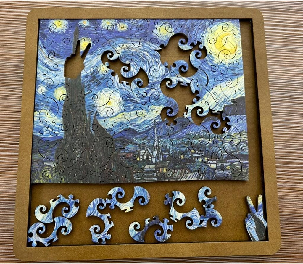 Great little puzzle. Purchased as part of the Van Gogh collection - each puzzle a mini art work in its own right. Great quality and just the right size for my attention span without getting bored.